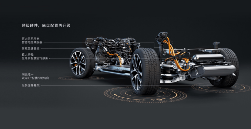 如果只看配置表,你或許難以直接感受到智己LS6的機械素質,但車主們都知道,智己在底盤硬件上的投入確實是同級別車型中領先的。智己LS6搭載靈蜥數字底盤2.0,全系標配最大正負9°的后輪轉向系統。