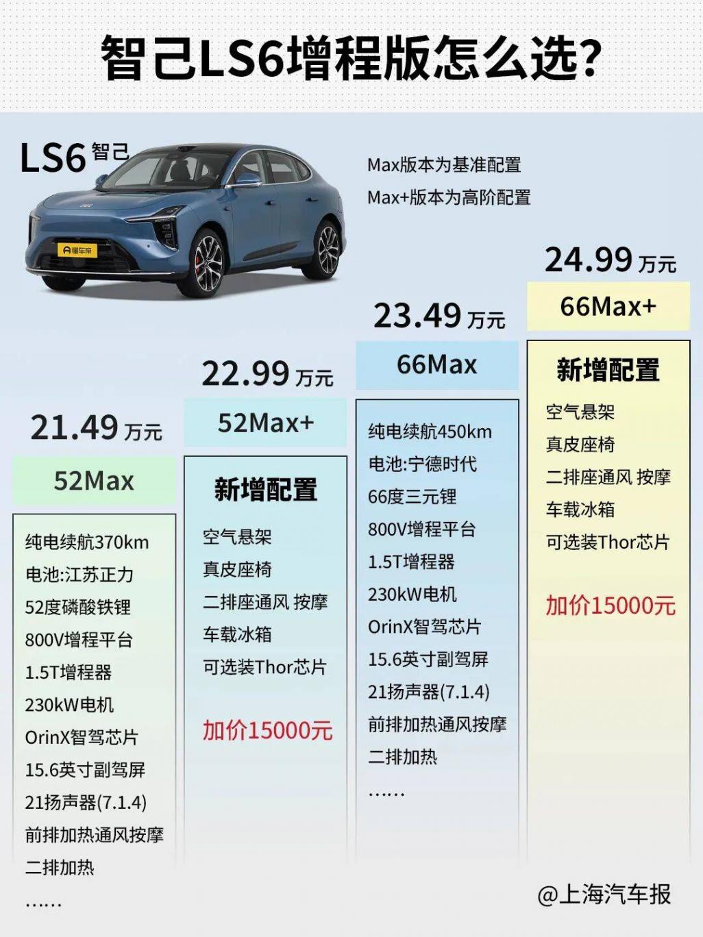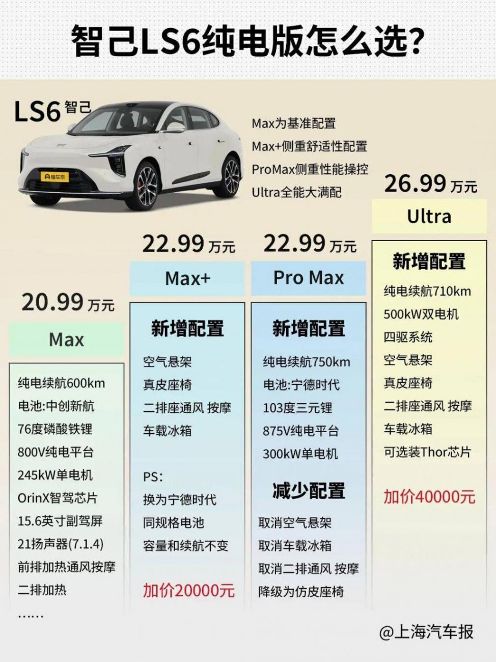 智己LS6純電版共推出五個配置:Pro、Max、Pro Max、Max+和Ultra。