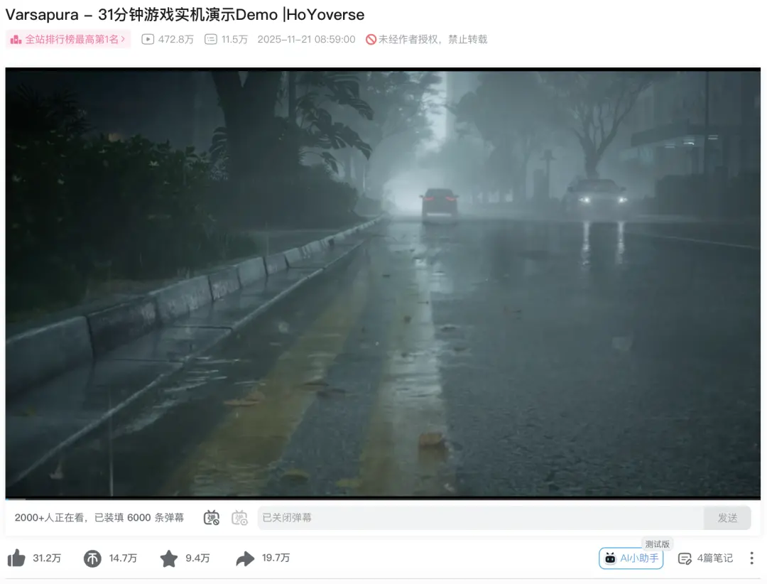 截至發稿,《Varsapura》實機演示Demo在B站播放量突破了470萬。蔡浩宇重新出山,這次會在米哈游復刻下一個《原神》嗎?