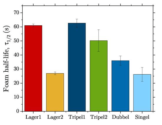 針對這個問題,遠在大洋彼岸,瑞士蘇黎世聯邦理工學院科學家們觀察到,有的啤酒泡沫一眨眼就沒了,而比利時精釀等啤酒的泡沫,動不動就能保持十幾分鐘。